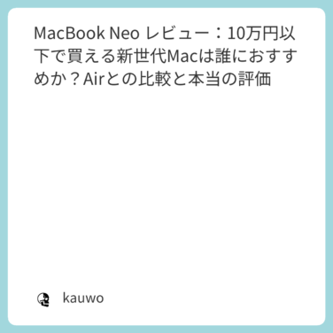 未分類 MacBook Neo レビュー:10万円以下で買える新世代Macは誰におすすめか?Airとの比較と本当の評価
